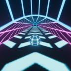 Slope 3 features a fresh new look compared to the original Slope, with a striking blue and black color scheme. The gameplay remains the same - steer the neon ball carefully to avoid hitting pink blocks while racing down the track.
